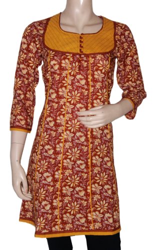Women's top shirt from Rajrang is blissfully comfortable for summer. Fabric used is light weight handloom woven cotton. Print in natural dyes in shades makes you feel close to nature. Sometimes these women's top shirts are also Hand Block Print work which adds to charm of top shirt. Wear these as casual dress outdoors in summer. They not only look elegant under sun, they are comfortable too since they help soak any kind of sweat you may have. Besides cotton tops and shirts are airy and breathe easily..../ Gorgeous Look Casual Wear Hand Block Printed Long Cotton Designer Kurta Top with Three Fourth Sleeves / Womens Designer